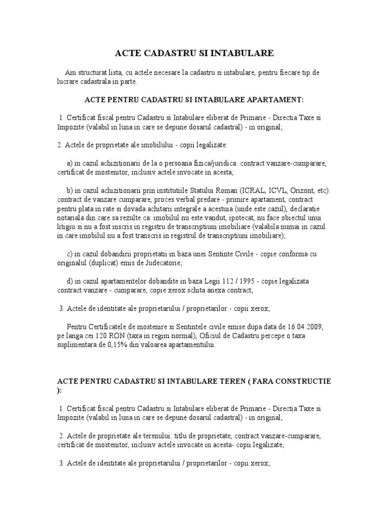 7 din hotărârea guvernului nr. Doar in baza acelui cm nu veti putea efectua intabularea nici vinde.