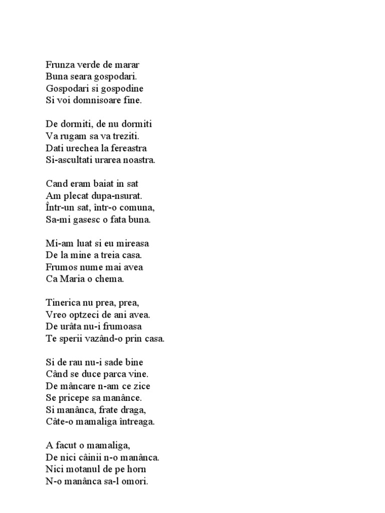 şi ne am luat cu ist clopoţel bălţat să stârnim câinii din sat c aşa i de la dumnezeu sfântu lăsat.