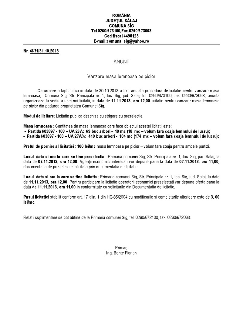 Nr 2163 08 10 2020 anuntul privind organizarea licitatiei intermediare pentru vanzarea de masa lemnoasa pe picior proprietate a unitatilor administrativ teritoriale 1 organizatorul licitatiei regia publica locala a padurilor stejarul r a avand c u i. Vânzare de masă lemnoasă pe picior. Achizitii servicii prevazute in anexa 2b. Pentru masa lemnoasa din fazele tehnologice ce va fi colectata in platforma primara a carei volum inventariat a depasit apv.